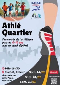 Le COR Elbeuf Athlétisme a le plaisir de vous proposer une activité athlétisme, avec un coach diplômé, dans le quartier du Puchot.
